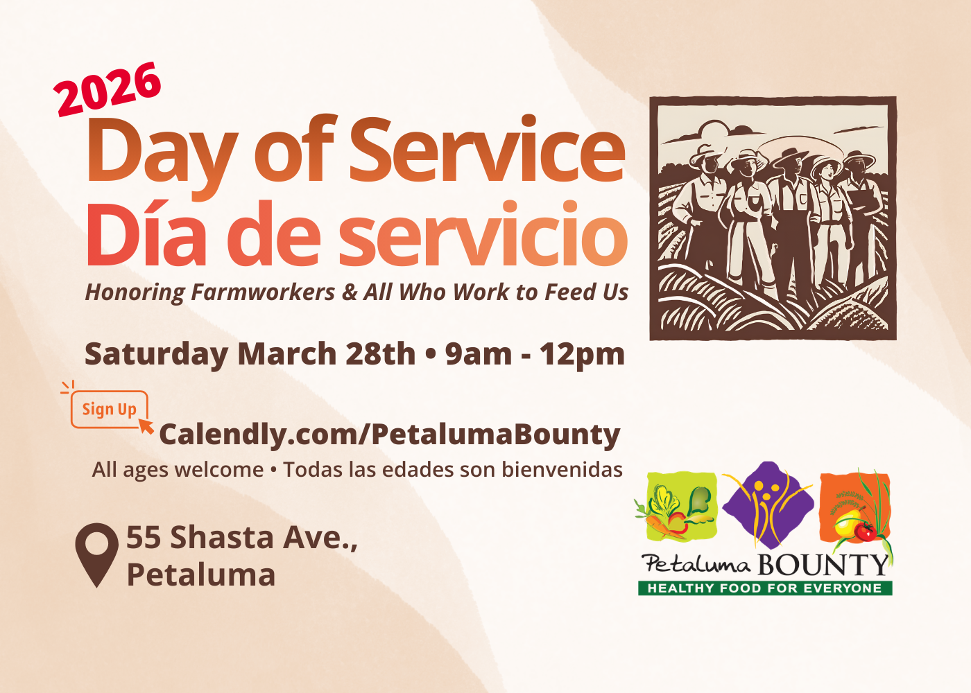 Join us for on the farm on Saturday, March 28, 2026. We’ll have volunteer activities from 9 a.m. to noon. Even if you can’t stay the whole time, we’d love to have you participate. Sign up for a spot at Calendly.com/PetalumaBounty Kids are welcome with an Continue Reading →