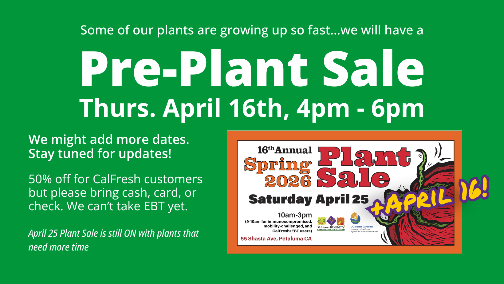 NEW: Pre-Plant Sale on Thursday April 16, 2026